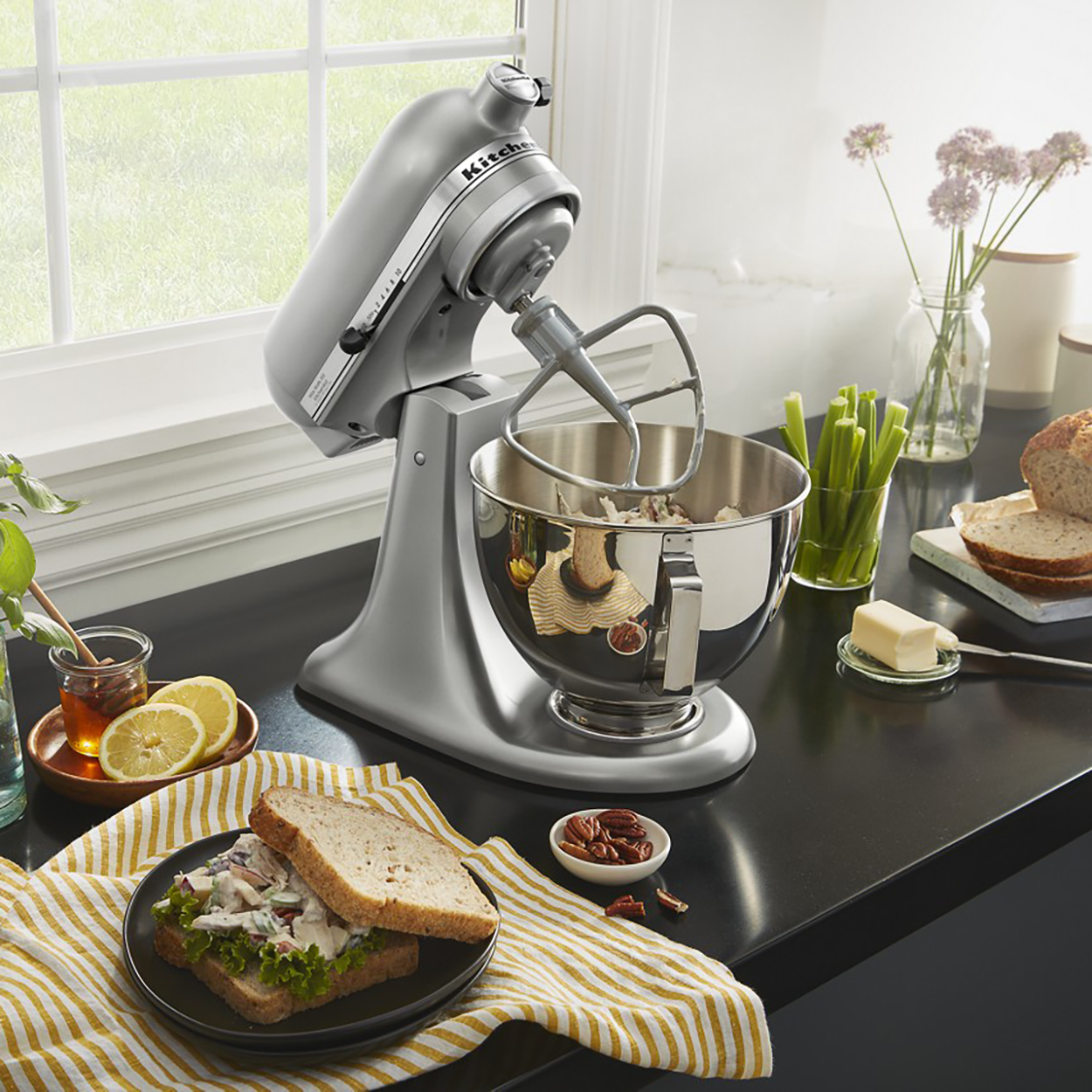 Batidora de pie Deluxe de 4.5 cuartos con cabezal inclinable - Ya sea que necesite 8 docenas de sus galletas de chispas de chocolate* o pollo desmenuzado para un martes de tacos con amigos y familiares, la batidora de pie Deluxe de 4.5 cuartos con cabezal inclinable KitchenAid® tiene la capacidad para cada ocasión.