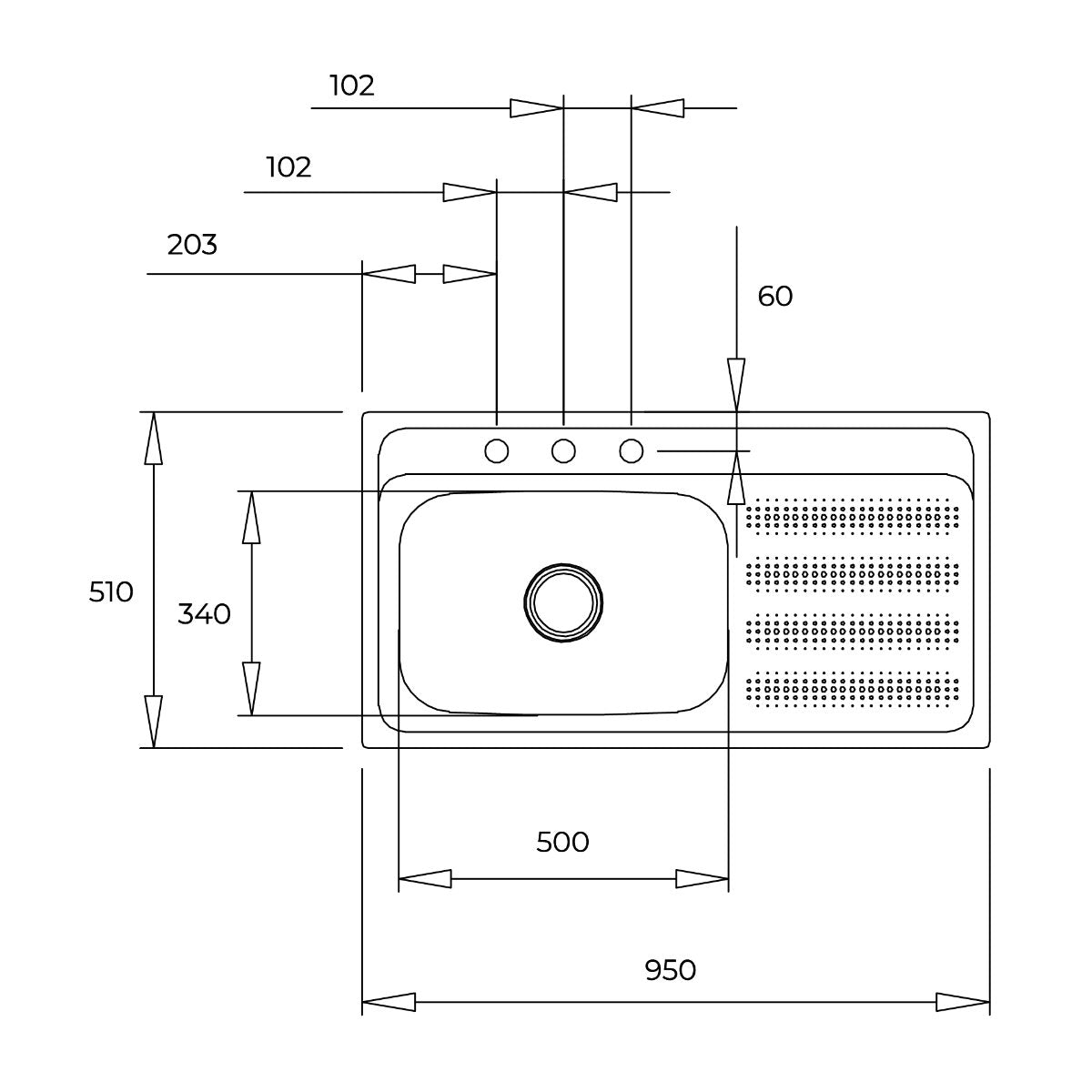 - Exterior (Largo/Ancho): 950 x 510 mm