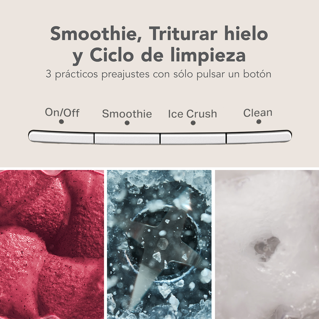 - 3 programas automáticos: Smoothie, Triturar Hielo y Limpieza.