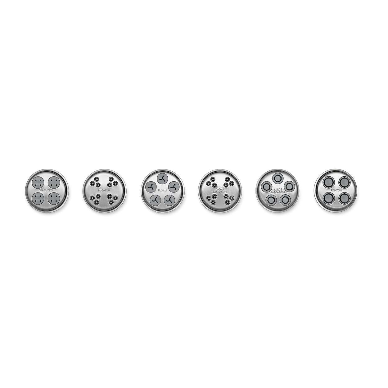 La prensa para pasta Gourmet de KitchenAid® incluye seis discos para elegir el estilo de pasta deseado, elabora macarrones pequeños y grandes, bucatini, rigatoni, fusilli y hasta espagueti. La prensa incluye un cortador de alambre para ajustar los fideos al largo que desees. Por qué conformarse con la pasta preempacada cuando la puedes realizar fresca y de forma fácil, con este aditamento del Centro Culinario. Hecho en Italia.