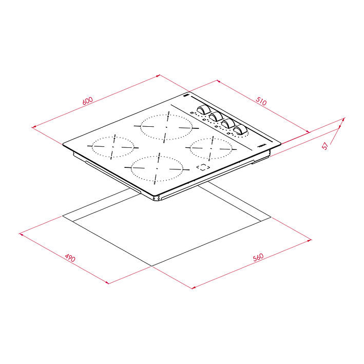 PARRILLA PLACA VITROCERÁMICA MODULAR DE 60cm CON CONTROL TÁCTIL NEGRA