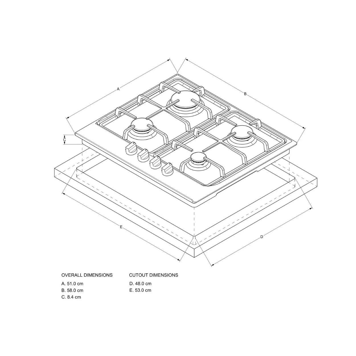 Ideal para espacios pequeños, incluye tambien kit convertible a Gas LP. Con cubierta de acero inoxidable que hara que luzca siempre como nueva y 4 quemadores: (2) Estándar de 5,970 BTU, (1) Súper de 9,950 BTU y (1) Simmer de 3,410 BTU. Adémas, perillas frontales con acabado en acero, encendido electronico, y dos parrillas de hierro fundido.