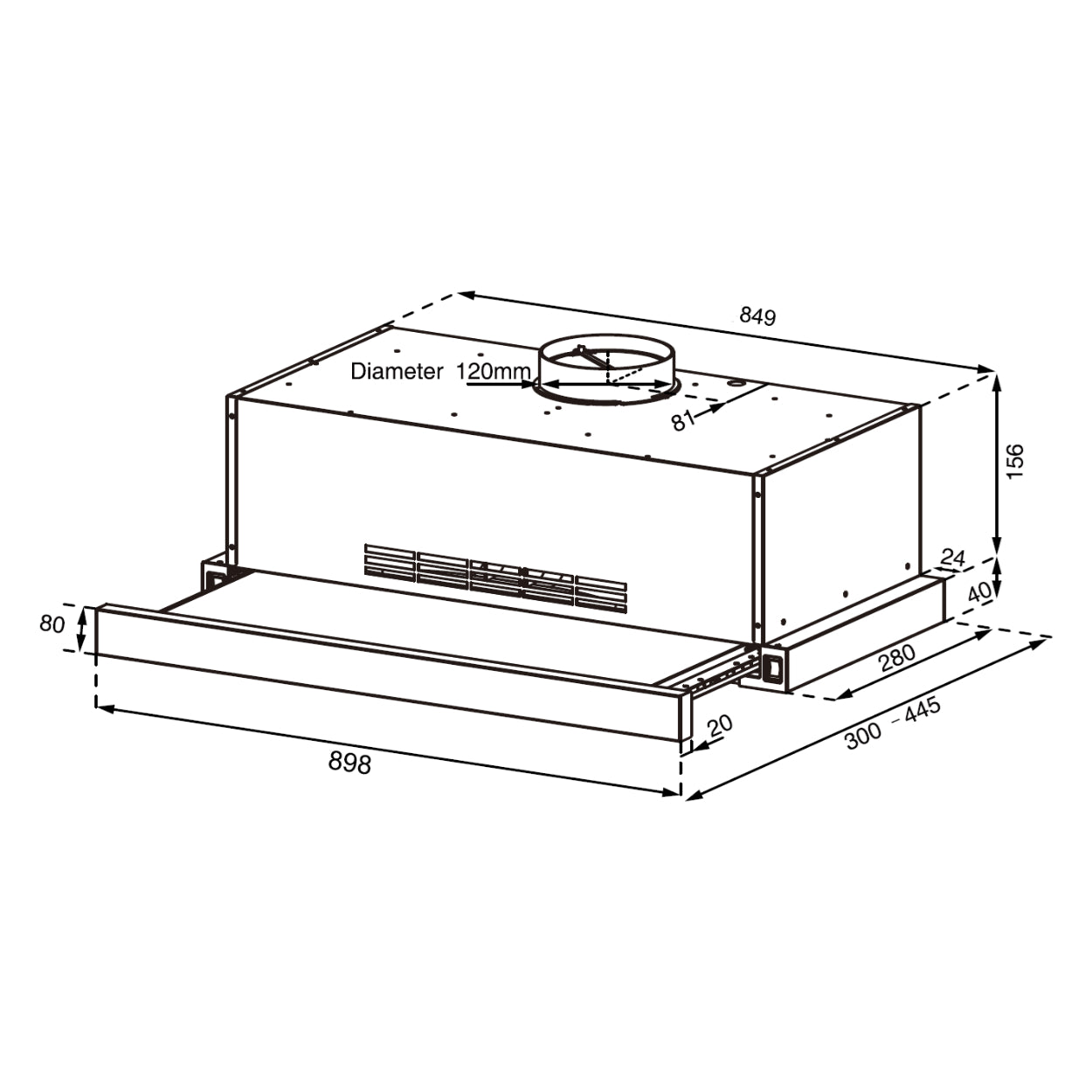 - Campana extensible de empotre con frente extraíble