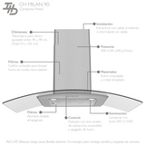 Campana de Pared IHD CH MILAN 90 de 90 cm (36 pulgadas) con Filtros Purificadores en Acero Inoxidable y Cristal Curvo