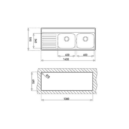 TARJA / FREGADERO DOBLE CON ESCURRIDOR EMPOTRABLE TEKA 1400.510 2C 1E I/D IZQ 1 PERF ACERO INOXIDABLE 140 CM